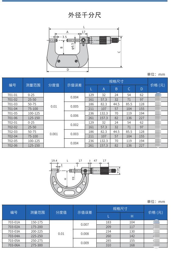 哈量量具 哈量千分尺 外徑千分尺0.01精度 微米千分尺0.001精度 管結(jié)構(gòu)千分尺