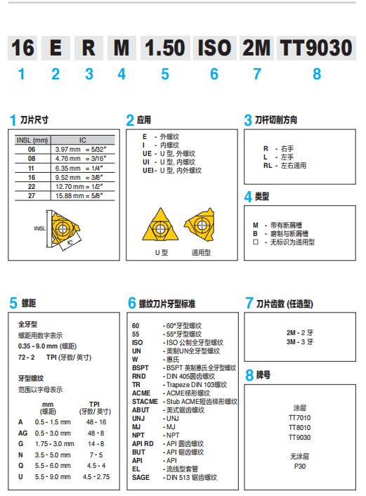 特固克內(nèi)螺紋刀片  11IR/L 1.50ISO TT7010  加工鋼和鑄鐵