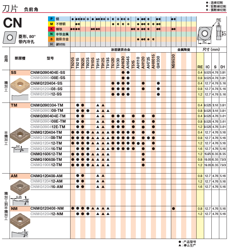 東芝泰珂洛刀具,CNMG090404E-SS AH630,車刀片 菱形刀片